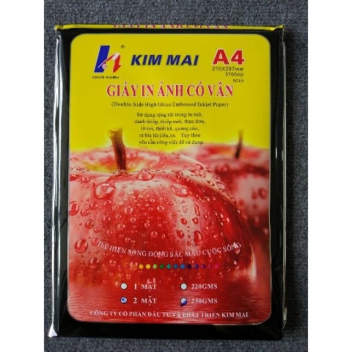Giấy Ảnh Kim Mai A4 Vân 2 Mặt Định Lượng 220gsm – Giấy In Ảnh Hai Mặt Chuyên Nghiệp, Bề Mặt Vân Sang Trọng