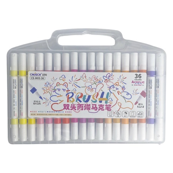 Một thương hiệu khác là Marie’s, cung cấp bộ 36 màu Acrylic dung tích 12 ml mỗi tuýp, nổi bật với độ bám dính cao, tươi sáng, không thấm nước và phù hợp cả trong nhà lẫn ngoài trời
