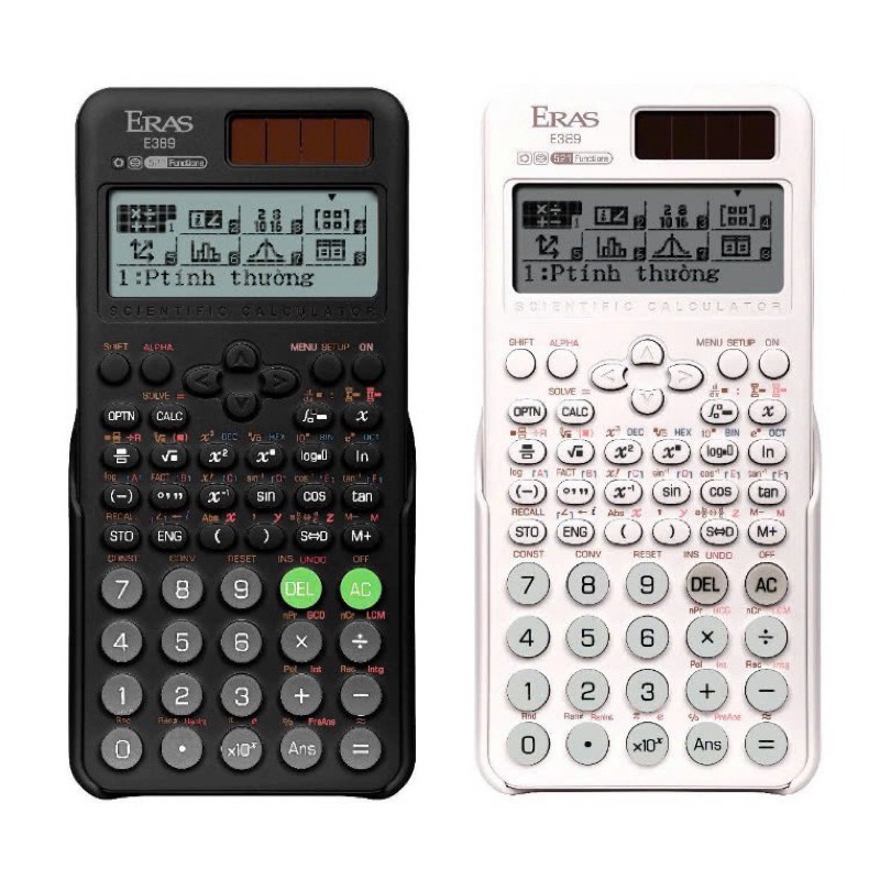 Máy tính khoa học Eras E389 với giao diện tiếng Việt thân thiện và 521 chức năng tính toán đa dạng là thiết bị hỗ trợ học tập và làm việc không thể thiếu cho học sinh, sinh viên và kỹ sư. Máy tích hợp đầy đủ các phép toán cơ bản và nâng cao như giải phương trình, tính toán ma trận, xác suất thống kê, đạo hàm, tích phân và số phức.