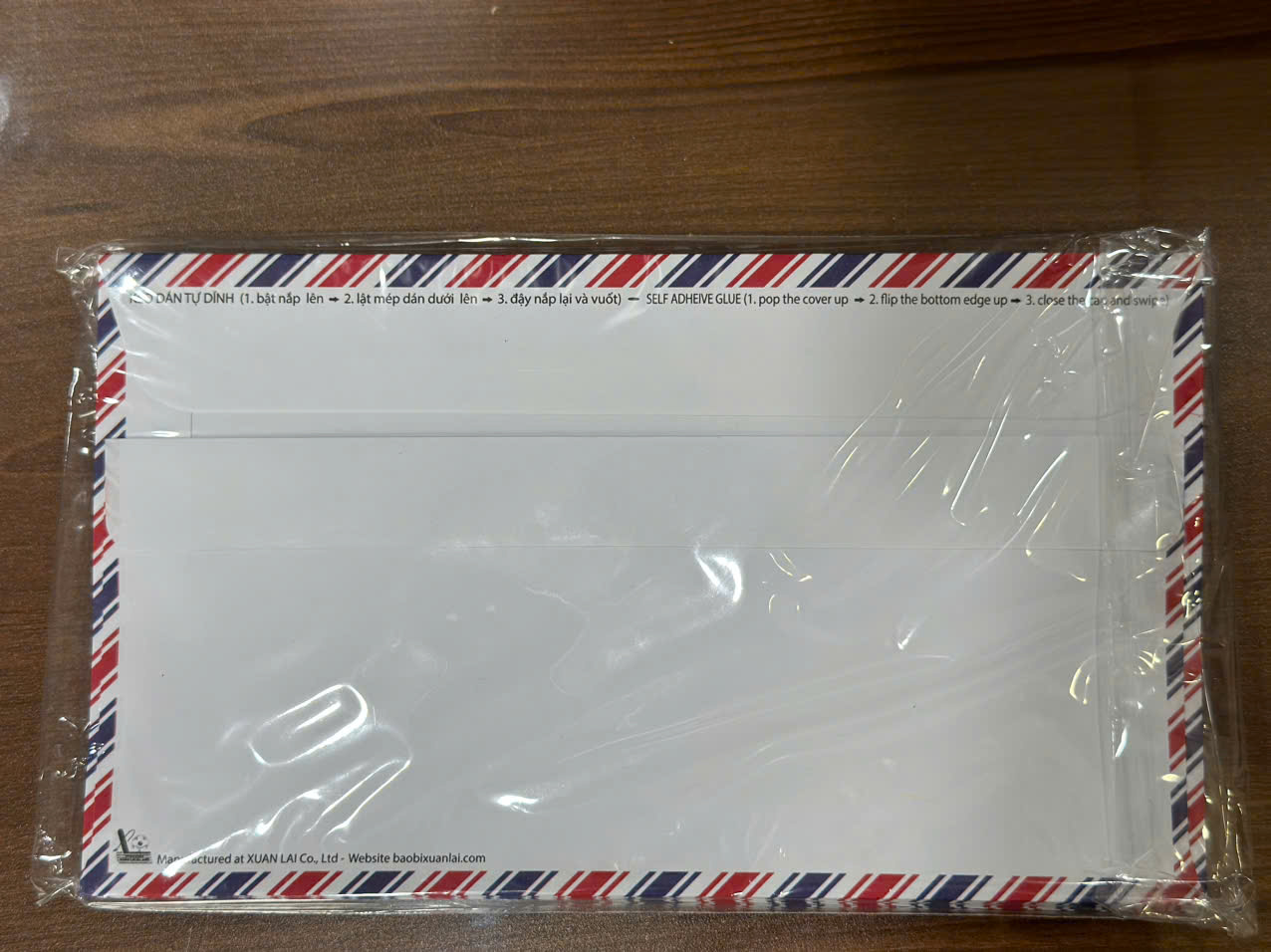 Phong bì thư cao cấp đóng gói 20 cái tập là dòng sản phẩm văn phòng phẩm chất lượng cao, được thiết kế dành cho các nhu cầu gửi thư, tài liệu hoặc quà tặng mang tính trang trọng. Sản phẩm phù hợp sử dụng trong môi trường doanh nghiệp, sự kiện hoặc các dịp đặc biệt như cưới hỏi, hội nghị.